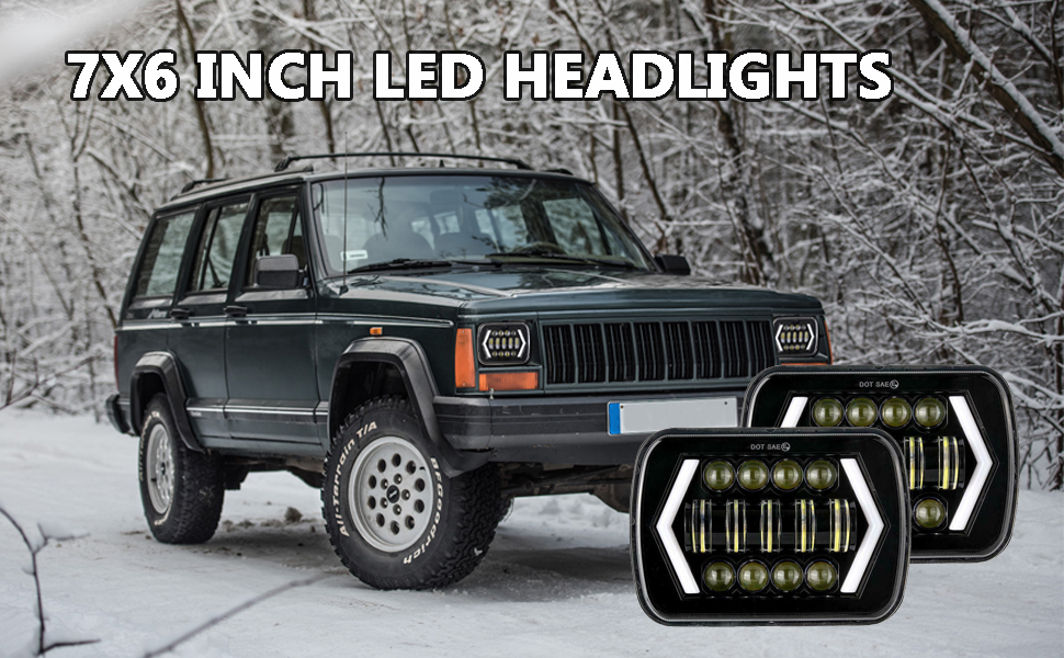 AMUNIESUN DOT Pair 7x6/5x7 Square LED Halo Headlights combine powerful 3800 lumen high beams and 1600 lumen low beams with integrated white DRL and amber turn signals. Built with a durable aluminum shell and easy H4 plug installation, these headlights fit 95% of vehicles including Jeep Wrangler YJ, Cherokee XJ, Chevy S10, and GMC models, enhancing safety and style with minimal modification.
