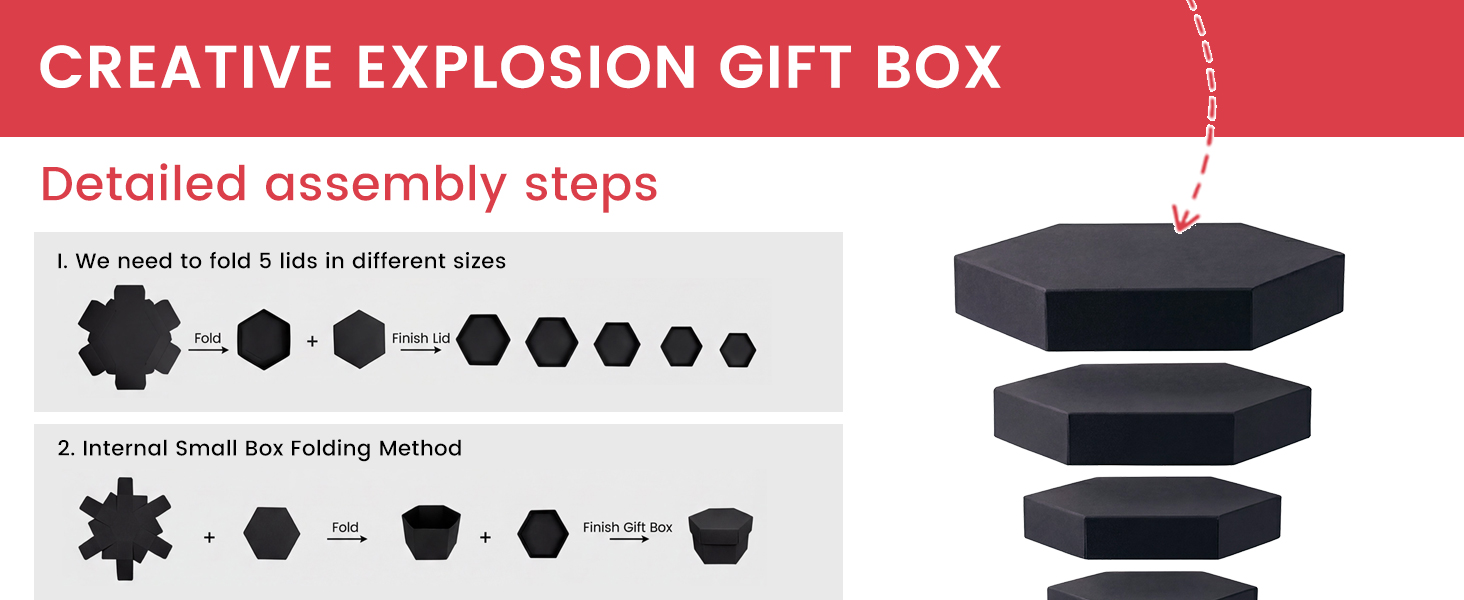 The Koogel Explosion Gift Box is a preassembled DIY photo album with a unique 4-layer explosion design that holds up to 36 photos. Crafted from silver material with a sleek black finish, it includes a rich accessory pack for customization and is perfect for weddings, anniversaries, birthdays, and special occasions. Its compact 3.94" cube size and dust-resistant build make it a stylish, meaningful keepsake that transforms your memories into an unforgettable gift experience.