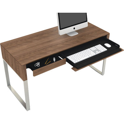 DescriptionCascadia combines the natural warmth of hardwood veneers with satin-nickel finished steel legs. Default DescTop Material: Manufactured WoodBase Material: MetalAssembly Required: YesFeatureIncludes a multi function system drawer as well as a side storage drawerIncludes a neoprene-lined multi function drawer for a keyboard, mouse and/or rechargeable itemsWire management tray on the inside of the back panelKeyboard tray location: Right sideWeight and dimentionPencilDrawer Interior - Pencil : 2'' H x 14'' W x 16'' DKeyboardDrawer Interior - Keyboard : 2'' H x 28.5'' W x 16'' DOther DimensionsOverall : 29.25'' H x 54.25'' W x 24'' DDesktop : 29.25'' H x 54.25'' W x 24'' DHeight from floor to bottom of desk drawers: 27"Overall Product Weight : 110 lb.SpecificationFeaturesDesk Type : Computer deskShape : RectangularTop Material : Manufactured WoodTop Material Details : MDF; Hardwood VeneersBase Material : MetalBase Material Details : SteelDrawers Included : YesDrawer Glide Material : WoodOffice Chair Included : NoHutch Included : NoCable Management : YesCountry of Origin : ChinaAssemblyAssembly Required : YesSpecifications