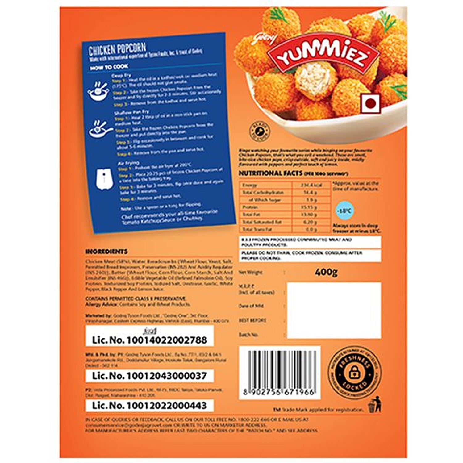 About the Product @import url("https://www.desercart.com/static/froala_style_v2.min.css"); Real Good Chicken Pop Corn is famous as a snack food, mostly while watching cinema in homes or theatres. It is available in secure packages and makes sure their compliance with the high-quality standards. Also, stored at low temperature, it keeps their crisp and freshness.Halal Cut is the tradition of making permissible food and drinks. The Popcorn Chicken is finger-licking' good and tastes delicious. It will keep you craving for more and with some Nom Nom.Real Good Yummiez, offers a range of vegetarian and non-vegetarian ready-to-cook products. These are easy to prepare at home – you can have nutritious, high protein snacks ready within minutes!