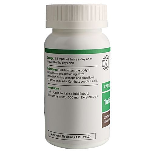 About the Product @import url("https://www.desercart.com/static/froala_style_v2.min.css"); Kapiva’s Tulsi Capsules use the concentrated extract of tulsi which is famously known as the queen of herbs. It bolsters the body's natural defences and strengthens the immune system.Fights against infections and it detoxes the blood and lymph nodes.Removes toxins from the body. Consume two capsules per day, before meals.Kapiva derives its name from the three doshas of Ayurveda, Kapha-Pitta-Vatta. our range of 200+ GMP Certified products have the right herbs in the right dosage and provide solutions to a variety of ailments. It's the day and age of hybrids, so go ahead and enjoy the best of both worlds, Ayurvedic tradition + Modern-day science and technology. Ingredients @import url("https://www.desercart.com/static/froala_style_v2.min.css"); Each Capsule Contains: Tulsi Extract (Ocimum Sanctum) Leaves 500mg, Excipients Q.S. How to Use @import url("https://www.desercart.com/static/froala_style_v2.min.css"); Consume two capsules per day, before meals.