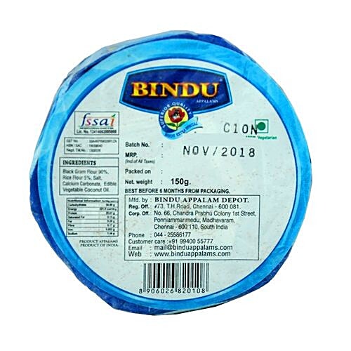 About @import url("https://www.desercart.com/static/froala_style_v2.min.css"); Our Sema Tasty Bindu Appalams Are Very Delicious & Tasty In Nature. Ingredients @import url("https://www.desercart.com/static/froala_style_v2.min.css"); Black Gram Flour 90%,Rice Flour 5%, Salt,Calcium Carbonate, Edible Oil