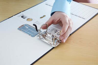 Description Our signature Advantage TopFiles 2-Ring Binder are perfect for unique paper storage needs. Functions equally well for top-punched documents or side-punched landscape spreadsheets and layouts. Hardbound linen-textured covers will stand up to years of use, keeping their good looks with the addition of an embossed Bindertek logo. Steel-reinforced edges protect binder from wear and tear. Steel-rimmed finger hole makes retrieval easy. 2-Ring mechanism is strong and more dependable than ever. Lever-arch mechanism that opens and closes effortlessly with perfectly-aligning ball-and-socket ends so pages turn smoothly. Compressor bar helps to keep pages safe and secure. 525 sheet capacity Fits top-punched 8.5" x 11" paper Removable label included in spine pocket Ring mechanism mounted to back cover for durability Ring locks on cover keep binder closed and standing upright Ring mechanism fitted with soft rubber handle Specifications Ring Type : Round Ring Color Family : Blue Weight (lbs.) : 2 Binder Type : Non-View Binders True Color : Ocean Blue Height in Inches : 9.75 Series or Collection : Advantage Topfiles Folder or Paper Size : Other Depth in Inches : 3 Width in Inches : 13.65 Ring Size : 3" Binder Pack Size : Each Binder Sheet Capacity : 500-699 Binder Durability : Heavy Duty Number of Rings : 2 Brand : Bindertek Customizable : No Weight : 1.00 lbs. per Each