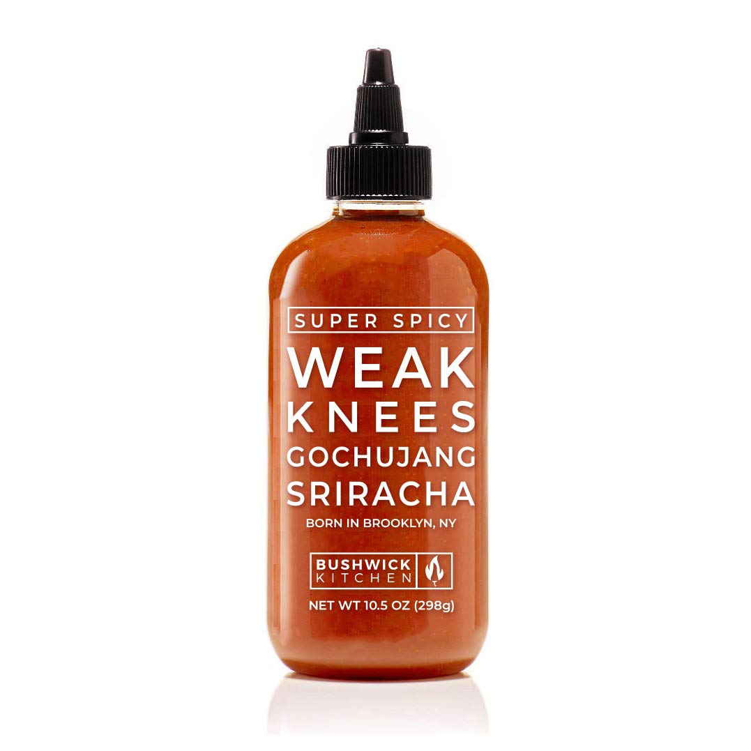 Weak Knees Super Spicy Gochujang Sriracha Hot Sauce is a 10.5oz USA-made condiment combining classic Korean fermented gochujang with fiery habanero peppers. This vegan, gluten-free, and paleo-friendly sauce delivers a complex, layered flavor profile that starts sweet and finishes with a smoky heat. Packaged in an easy-squeeze bottle, it’s perfect for adding bold spice to ramen, wings, tacos, and more—without any artificial additives.