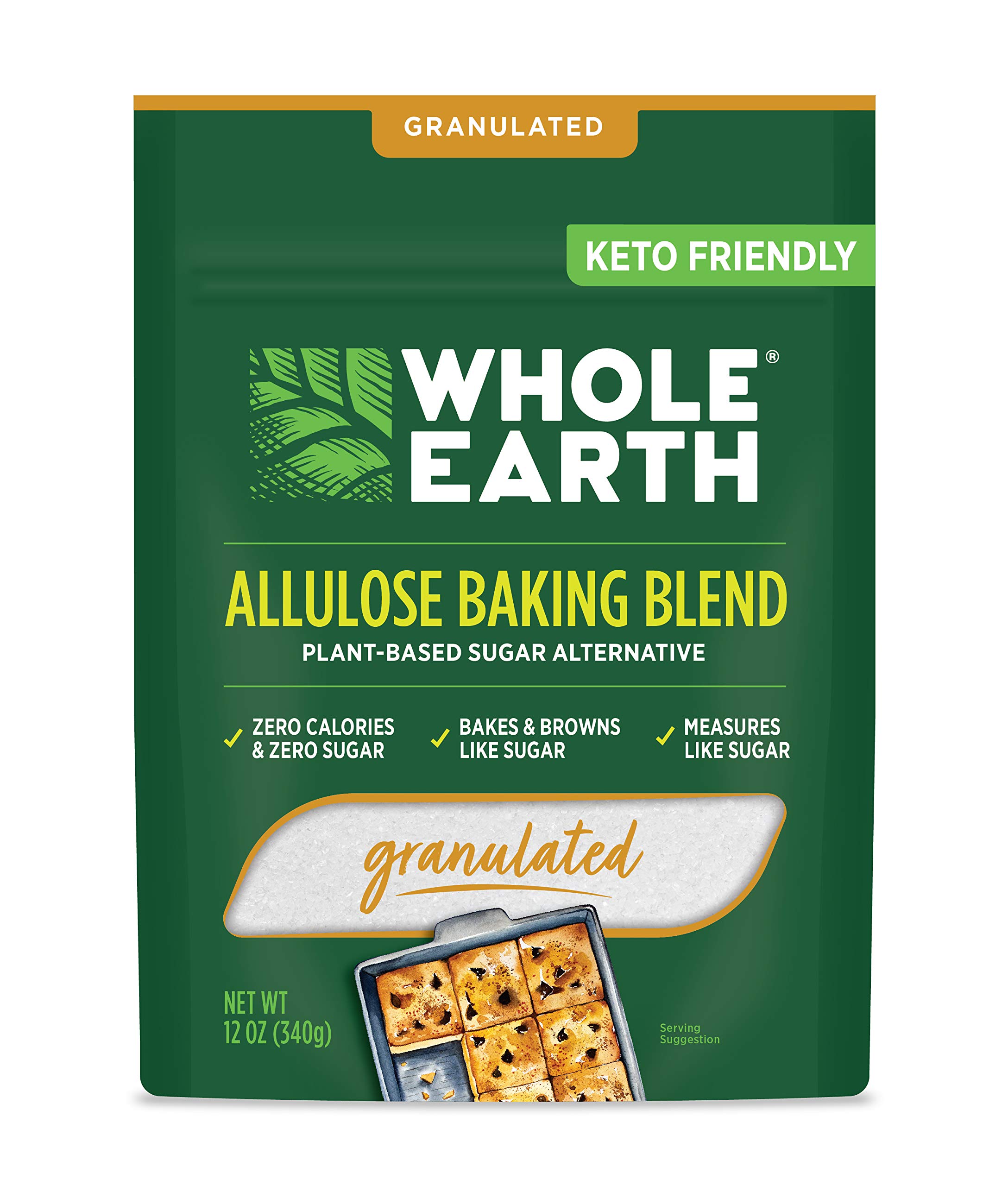 Whole Earth Sweetener Co.'s Allulose Baking Blend is a plant-based, granulated sugar alternative designed to perfectly mimic sugar’s baking performance with zero calories and zero net carbs. Combining allulose, erythritol, stevia, and monk fruit, it offers a clean, natural sweetness without any aftertaste. Ideal for keto, paleo, and gluten-free diets, this 12-ounce resealable pouch delivers a 1:1 sugar replacement that browns and measures just like traditional sugar, making it the ultimate guilt-free baking essential.