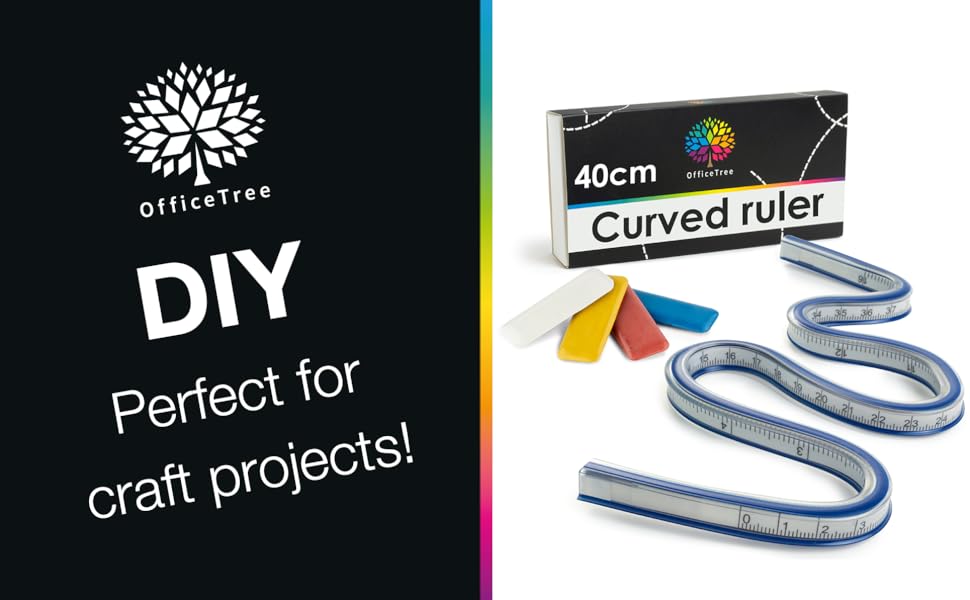 The OfficeTree Flexible Curve Ruler is a 40 cm double-sided measuring tool made from durable, flexible vinyl, designed for precise curved line drawing in sewing, pattern making, and design. It includes 4 tailor’s chalks for easy fabric marking, making it an essential, versatile tool for professionals and creatives alike.