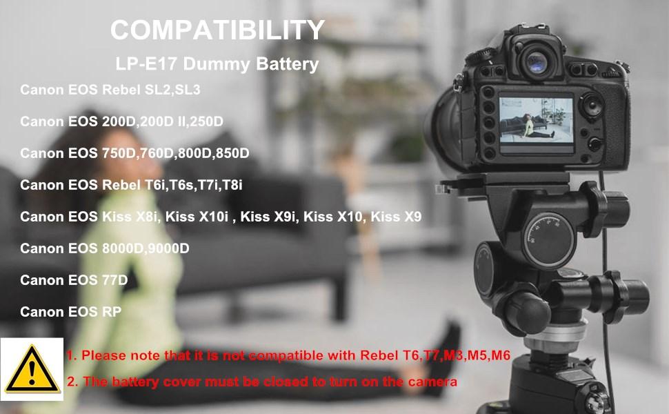 | Compatible Phone Models | Canon Rebel T6i, T7i, T8i, 200D, SL2, SL3, 200DII, T6s, 750D, 760D, 800D, 850D, EOS 250D, EOS 8000D, 77D, Kiss X8i, Kiss X10i, Kiss X9i, Kiss X10, Kiss X9, 9000D, EOS RP, EOS R8, EOS R10, EOS R50, EOS R100 Cameras. |