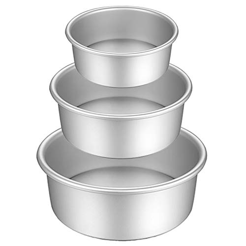 These cake baking pans are awesome. I have never seen a cake pan that is so tall. I'm not referring to all of pans being stacked on each other. I'm referring to each individual pan. The largest pan has to be a good 4 to 5 in tall. It will take two boxes of cake mix to fill it. I've always wanted to decorate my own cake. I'm ordering some cake decorating supplies and I'm going to give it a go. But you can't make a good custom cake without these kind of high quality baking pans. The bottoms come out of the baking pan so that you could push the cake out easily once it's done. Are all teflon-coated and will clean easily. This is definitely a high-end professional baking pan set that will make s beginner like me to good.