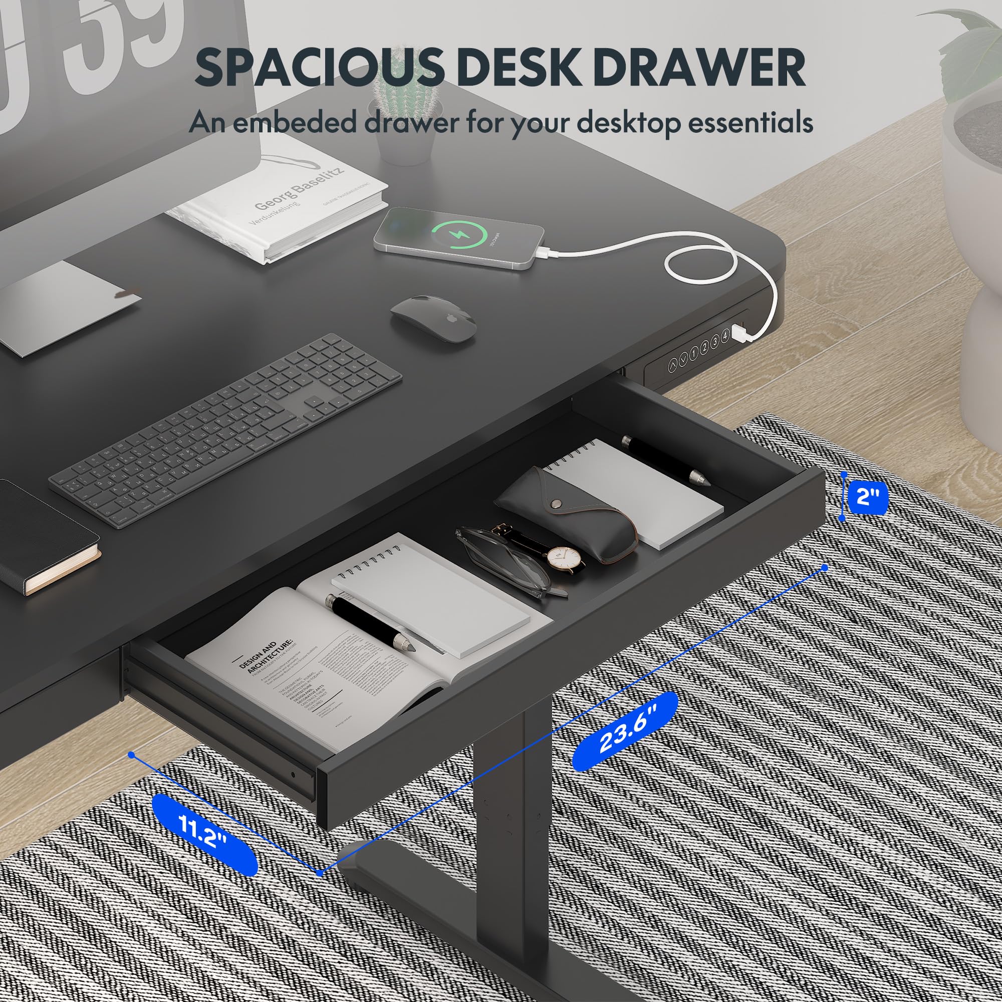 The FLEXISPOT Electric Standing Desk is a versatile and stylish solution for your home office, featuring an industrial-grade steel frame, electric height adjustment, and a convenient storage drawer. With a weight capacity of 110lbs and integrated USB charging ports, this desk is designed for efficiency and ease, allowing you to transition from sitting to standing in seconds. Assembly is a breeze, taking less than 5 minutes, making it the perfect addition to any modern workspace.