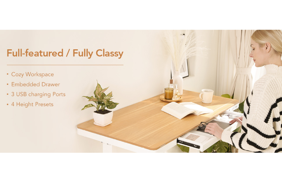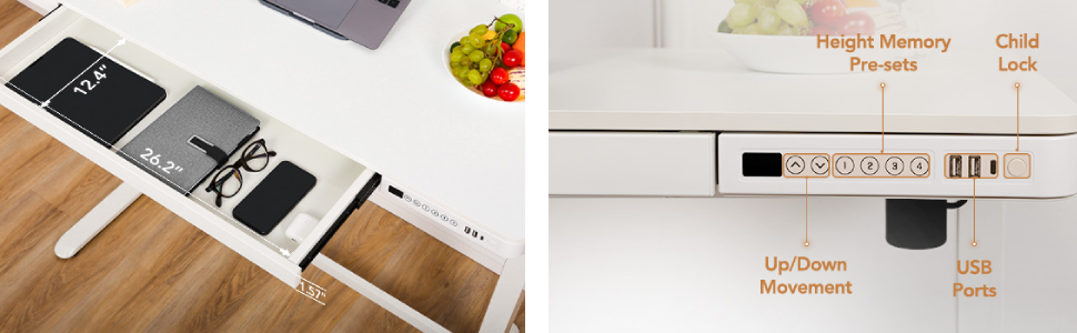 After 1 week of daily use, I can say that this is an excellent desk that is worth the money. With the storable positions and the 3 USB charging stations, it is perfect for working in the home office.
