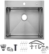 VESLA HOME30"x18" Inch 18 Gauge Topmount Single Bowl Stainless Steel Drop in Kitchen Sink,Overmount Handmade Brushed Nickel RV Kitchen Sinks with Dish Grid and Drain Cap