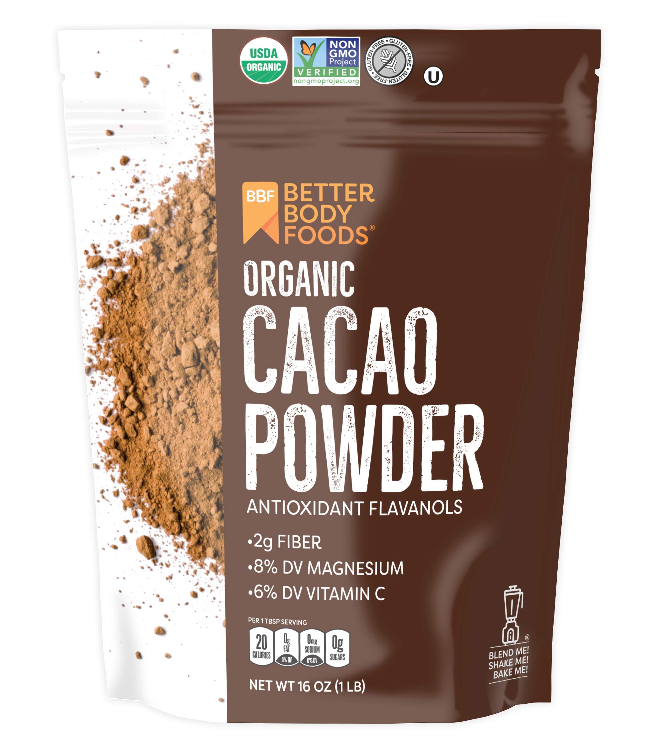 BetterBody Foods Organic Cacao Powder delivers a rich, smooth chocolate flavor with the benefits of organic, non-GMO, and gluten-free certification. Sourced from Peru, this 16 oz bag offers a versatile, nutrient-packed superfood alternative to traditional cocoa powder, perfect for baking, smoothies, and beverages. With less fat and fewer calories, it’s the smart choice for health-conscious chocolate lovers seeking premium quality and clean ingredients.