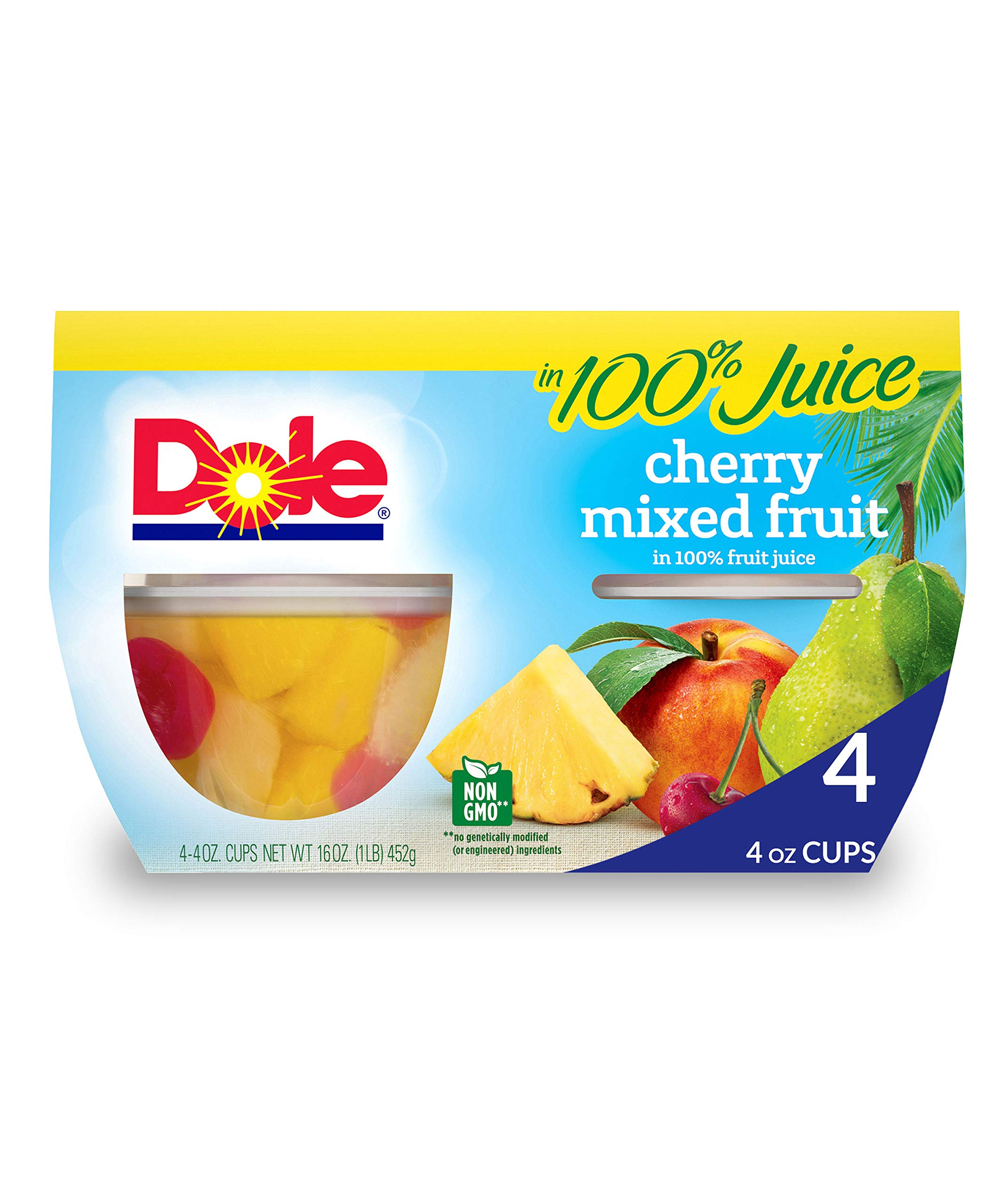 Dole Cherry Mixed Fruit Bowls deliver a fresh, pre-cut blend of cherries, pineapple, peaches, and pears packed in 100% fruit juice. Each 4 oz bowl is an excellent source of Vitamin C, free from added sugars, and designed for quick, healthy snacking anytime—whether at work, school, or home. Backed by Dole’s commitment to quality and sustainability, these fruit bowls combine taste, nutrition, and convenience in one vibrant package.