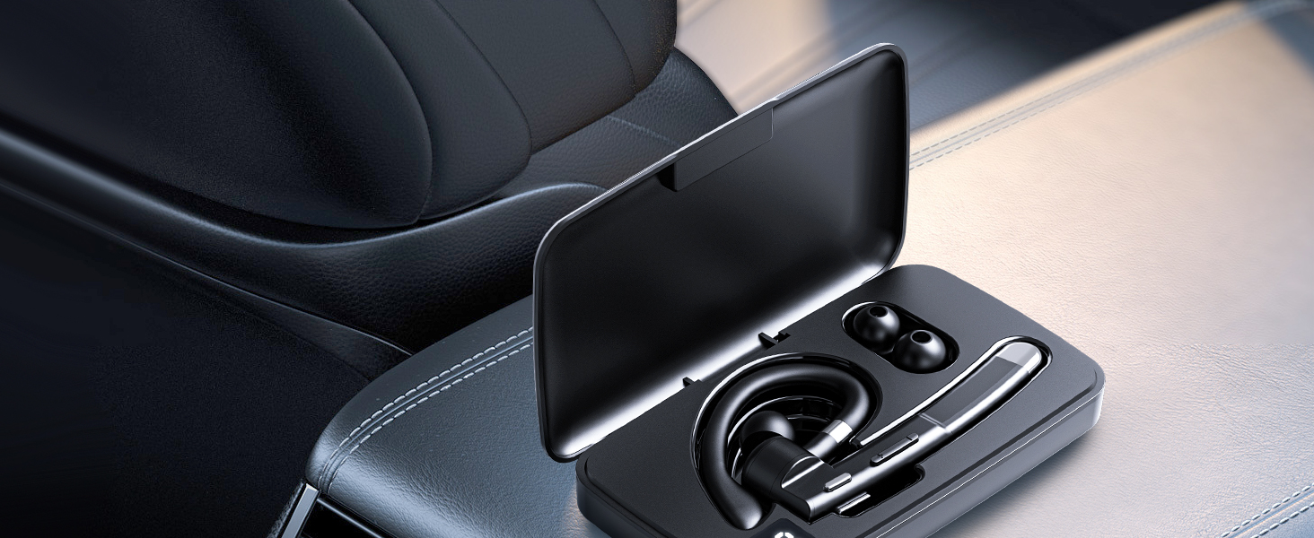 EUQQ Bluetooth Wireless Earpiece for Cellphone, Bluetooth 5.1 Headset Wireless Headphone with Charging Case,Microphone for Office Driving, Hands-Free Earphones Compatible with Android/iOS
