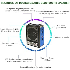 - STAY CHARGED READY - Enjoy up to 7 hours of continuous music or microphone playback with a rechargeable battery.