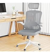 ZASTION Office Chair, Ergonomic Desk Chair Home Office Desk Chairs, Breathable Mid-Back Comfortable Mesh Computer Chair with PU Silent Wheels, Flip-up Armrests, Tilt Function, Lumbar Support (Khaki)
