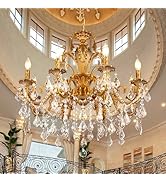 The TOCHIC French Empire Crystal Chandelier is a 28" wide by 48" high ceiling fixture featuring a solid metal frame with an antique bronze finish and dazzling crystal embellishments. It supports 12 E12 bulbs (up to 60W each), is fully dimmable with compatible bulbs, and includes an adjustable chain up to 43.3" for customizable height. Perfect for high-ceiling foyers, dining rooms, and living spaces, this chandelier blends vintage French country style with modern farmhouse elegance, backed by a 1-year warranty and premium build quality.