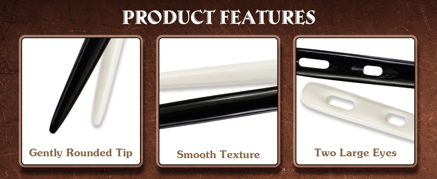 The Savina Set features two handcrafted nalbinding needles made from durable cattle bone and horn, designed for a variety of crafting projects. With large eyes for easy threading and two size options, these needles ensure a smooth and enjoyable crafting experience. Backed by a satisfaction guarantee, they are perfect for both novice and experienced crafters.