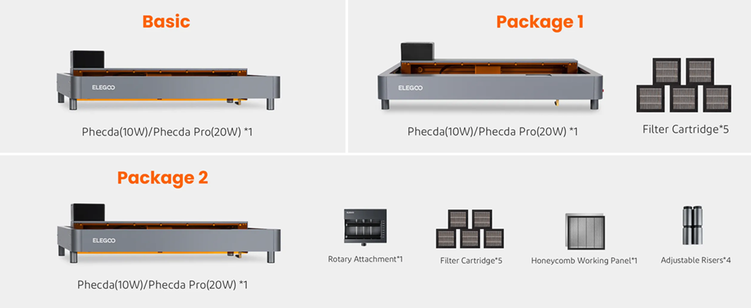 The ELEGOO PHECDA Laser Engraver boasts a powerful 20W output, enabling high-speed engraving at 25,000 mm/min. With a generous 15.75x15.75'' engraving area and multiple operation methods, including app control, itβs designed for versatility and safety, featuring advanced smoke filtration and flame detection.
