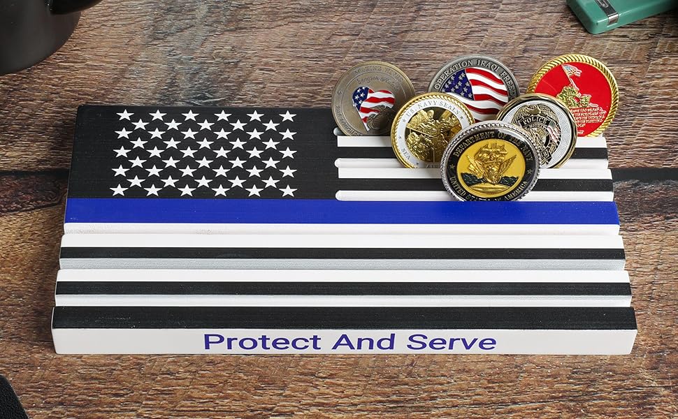 6 Row American Flag Challenge Coin Display Protect And Serve | Desertcart Australia