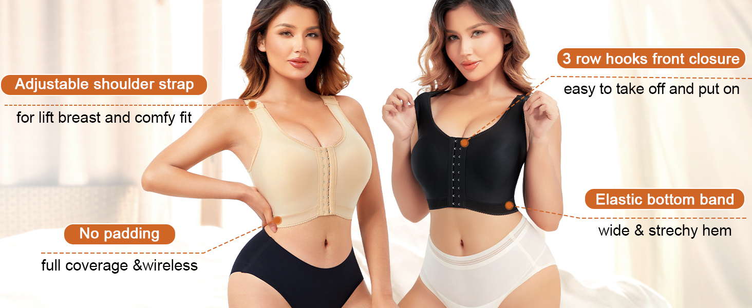 LANCS Adjustable Front Closure Bras for Women Post Surgery Bra Compression Tank Top Posture Corrector Shapewear Top