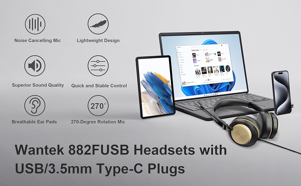 Wantek Usb Headset With Microphone For Laptop Pc Headphones Noise | Desertcart Australia