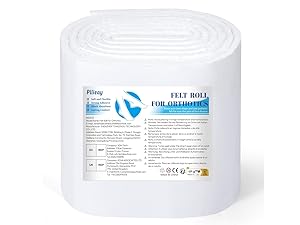 Pllieay Felt Rolls offer a 6" wide by 1.1-yard long orthopedic wool-rayon blend felt with 1/4" thickness and adhesive backing, designed to provide superior cushioning and moisture control for sensitive feet and versatile protective uses.