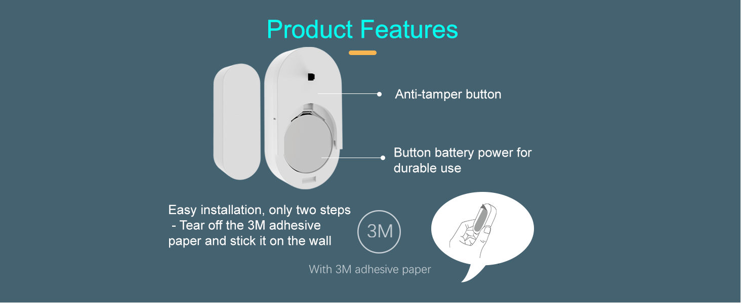The TUGARD Door/Window Contact Sensor is a compact, battery-powered security device operating at 433MHz, designed for seamless integration with the TUGARD Alarm System. Featuring anti-tamper alerts, low battery indicators, and easy tool-free installation, it ensures real-time protection and peace of mind for your home or office.