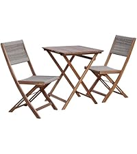 The Garden life Wooden Bistro Furniture Set features a durable, water-resistant Acacia hardwood construction with a foldable design for easy storage. This 3-piece set includes a 70x70cm table and two comfortable chairs, pre-treated and pre-assembled for immediate outdoor use, making it the perfect stylish and practical addition to any patio or garden space.