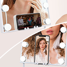 COOLJEENVanity Mirror with Lights and Bluetooth, 12 LED Light Up Makeup Mirror with Detachable 10X Magnifying Mirror, 3 Color Lights Hollywood Mirror, 360° Rotation