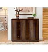 The LKTART Mid Century Modern Sideboard Buffet Cabinet features a stylish fluted sliding door design crafted from premium walnut wood and MDF. Its slim 12-inch depth maximizes space efficiency, while a built-in outlet hole offers convenient charging for appliances and devices. Durable construction and easy assembly make it a versatile, elegant addition to any living room, kitchen, or entryway.