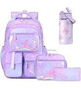 This 4-piece girls' backpack set by ACESAK includes a spacious mermaid-themed backpack, insulated lunch bag, 14oz stainless steel water bottle, and pencil case. Designed for middle school students, it offers durable, BPA-free, and leak-proof features with ample storage for laptops and school essentials, plus temperature retention for food and drinks. Ideal for school and outdoor activities, it combines style, function, and convenience in one vibrant package.