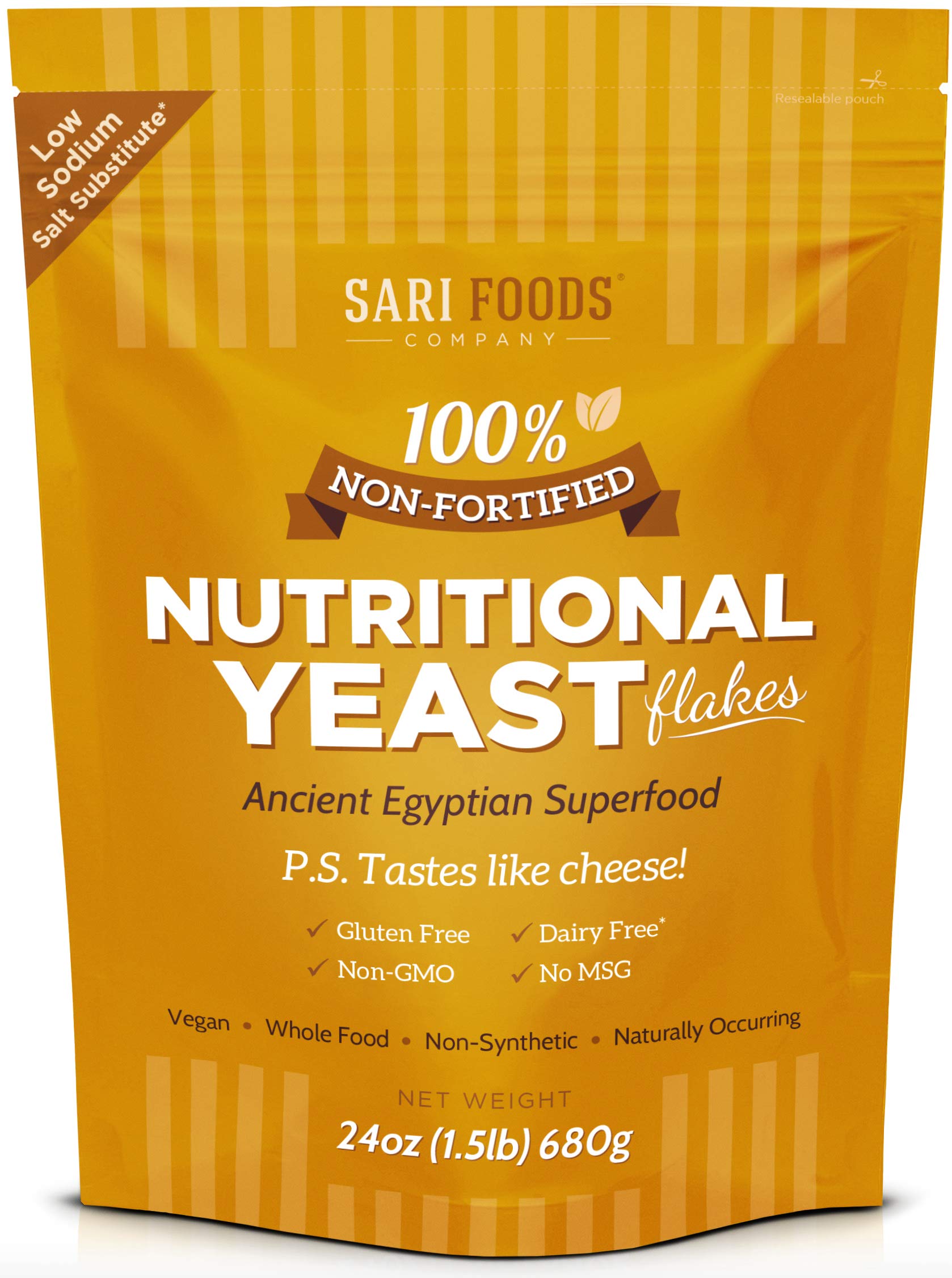 When my wfpb recipes don’t work out, this purchase always helps . I’ll always have it in my refrig. I started my WFPB journey about 4 years ago and have seen a pretty remarkable change in my blood work, for the better. I had read “ how not to die” by Dr M Greger and I was convinced my highly processed, meat driven doctor was a cause of many of my issues. It took a good 1-2 months to stop craving certain foods but my health was improving and I was feeling better. I started experimenting with various products I had never tried before to help with my new way of cooking healthy. Dr Greger, who is def my hero, talked about nutritional yeast and its health benefits. He had suggested non- fortified. He never mentions which ones to try so I began my trial and error taste tests. Sari was my favorite and it’s a really clean product. Yes, I read in detail. I have no affiliation with any food product or company. I felt since it helped me stay plant based, bc my food tastes better, I wanted to give it a shout out. I use it mostly my stir fries, but also in my breakfast tofu eggs( not eggs), and on popcorn, even soups. It adds a cheese like flavor. It very low salt which is really impt to me. Other than cocoa powder, it’s my top favorite plant based additions to keep me plant based for life. So, so worth it.
