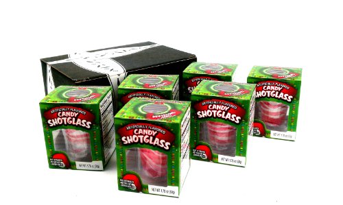 These Peppermint Candy Cane Edible New Year's Shot Glasses come in a pack of six, each holding 1.76 oz. They are fat-free and presented in an elegant BlackTie Box, making them a delightful addition to any festive celebration.